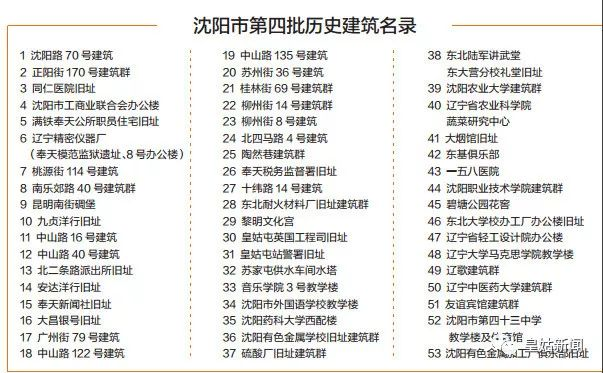日前,沈阳市公布第四批历史建筑名录,共53处122栋。太阳成集团tyc122ccvip官网入口等一批公司的部分建筑纳入名录。