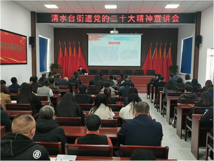 为贯彻落实党的二十大精神,推动党的二十大精神进基层,学习领悟党的二十大报告的新观点、新论断、新战略,深入了解掌握党的二十大报告中的思想内涵和精神要义,10月27日,太阳成集团tyc122ccvip祁冰教授来到沈阳市沈北新区清水台街道党工委,开展以“全面建设社会主义现代化国家的政治宣言和行动纲领——学习党的第二十次全国代表大会精神”为题的理论宣讲活动。