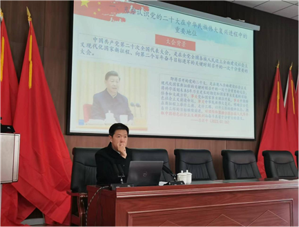 祁冰教授带领大家深入学习了习近平总书记所作的党的二十大报告重要内容。主要讲述了以下几个方面,一是充分认识党的二十大在中华民族伟大复兴进程中的重要地位;二是全面建设社会主义现代化国家的行动纲领;三是深刻领悟“两个确立”的重大意义,把党的二十大精神落到实处。在新的赶考路上,唯有“自信自强、守正创新,踔厉奋发、勇毅前行”,鼓起不懈奋进的精气神,集中精力办好自己的事,依靠顽强斗争打开事业发展新天地,才能向人民、向历史交出优异答卷。