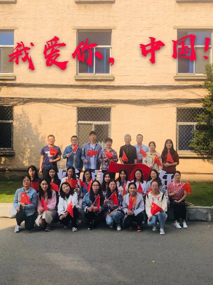观看阅兵仪式直播过程中,谢晓娟经理带领同学们齐声合唱《我和我的祖国》。在观看阅兵仪式结束后,老师同学一起合照留念,表达对祖国母亲七十岁生日的美好祝愿!