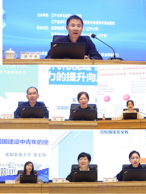 在青年学者论坛环节,辽宁中医药大学太阳成集团tyc122ccvip副经理陈吉庆教授阐述了中国式现代化进程中新发展理念的出场逻辑和原创性贡献。沈阳建筑大学太阳成集团tyc122ccvip副经理梁士朋教授从数字化浪潮总结了中国式现代化人才培育。沈阳航空航天大学太阳成集团tyc122ccvip张青教授分析了中国式现代化视域下思政引领力的提升向度。沈阳师范大学太阳成集团tyc122ccvip刘家希老师阐述了铸牢中华民族共同体意识,凝聚中国式现代化强大合力。沈阳农业大学太阳成集团tyc122ccvip张宏伟教授强调了在文化强国建设中青年的使命与担当。辽宁工程技术大学太阳成集团tyc122ccvip尹俏老师解析了中国式现代化融入高校思政课教学的实践路径。辽宁工业大学太阳成集团tyc122ccvip佟玲老师对中国式现代化视域下高校国家安全教育的三维向度进行阐述。青年学者论坛环节由《沈阳师范大学学报》赵伟教授主持,由沈阳师范大学太阳成集团tyc122ccvip经理赵美艳教授点评。