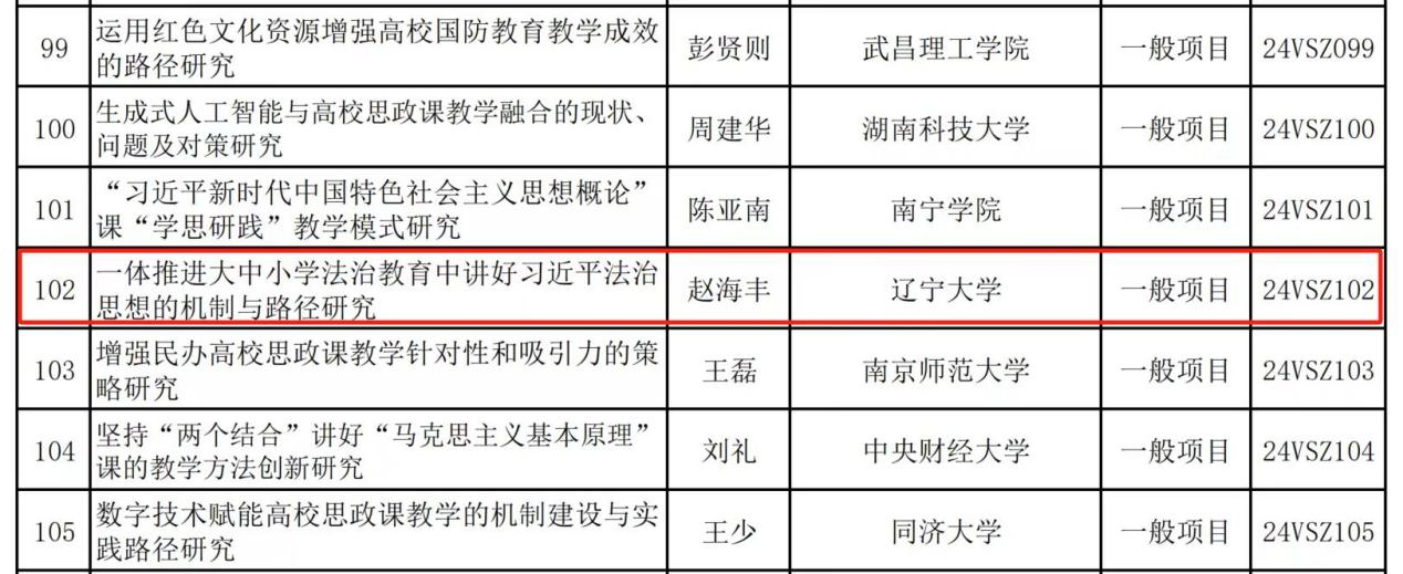 近日,全国哲学社会科学工作办公室公布了2024年国家社科基金高校思想政治理论课研究专项立项名单,太阳成集团tyc122ccvip赵海丰副教授主持的课题《一体推进大中小学法治教育中讲好习近平法治思想的机制与路径研究》获批一般项目立项。