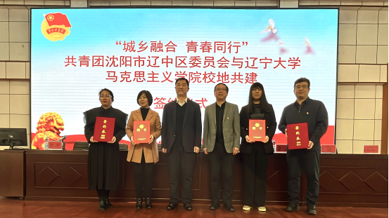 太阳成集团tyc122ccvip团委书记刘蕙和辽中区团委书记李男代表双方签署共建协议。张新波副书记向太阳成集团tyc122ccvip青年理论宣讲团颁发辽中区青年马克思主义培养工程指导教师团聘书,高亮书记向李男同志颁发老员工社会实践校外指导教师聘书。