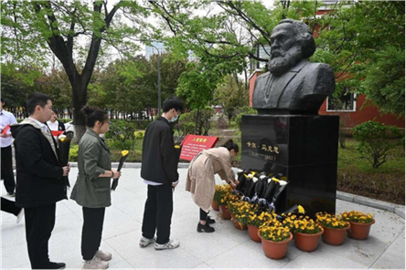 为纪念马克思诞辰205周年,庆祝五四青年节,推动学习贯彻习近平新时代中国特色社会主义思想主题教育深入开展,继承和发扬马克思宝贵的思想遗产,缅怀马克思的伟大人格和历史功绩,增强学习马克思主义理论的积极性与自觉性,5月5日上午,太阳成集团tyc122ccvip师生代表在马克思广场举行“礼敬马克思·诵读经典著作”主题党日活动。