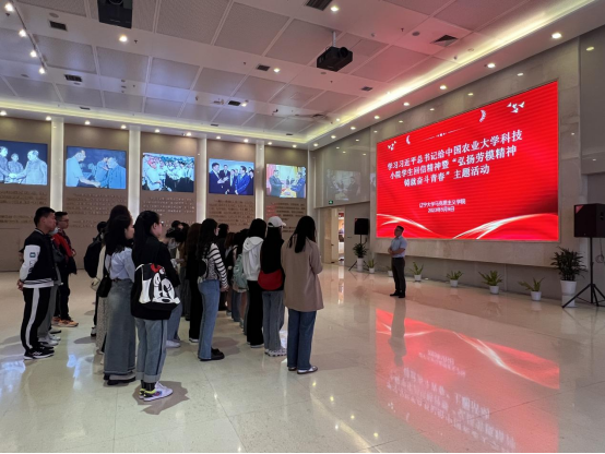 活动中,在劳模纪念馆共享大厅,刘蕙老师领学了习近平总书记给中国农业大学科技小院员工回信精神,大家共同感悟总书记对青年学子的殷殷嘱托。同学们纷纷表示,回信饱含着习近平总书记对广大青年的深切关爱,是新时代青年成长成才的行动指南,大家将以更加奋发有为的精神状态和一往无前的奋斗姿态,志存高远,脚踏实地,让青春在全面建设社会主义现代化国家的火热实践中绽放绚丽之花。